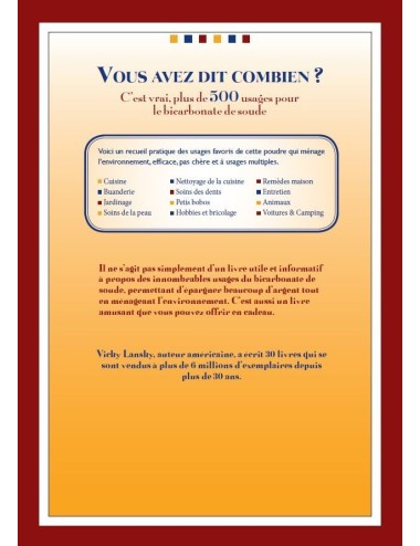 Das wertvolle weiße Pulver wurde verwendet, um Obst und Gemüse zu waschen, eine Prise davon half gegen Verdauungsstörungen oder Säurebeschwerden. Es galt als idealer Helfer für die Reinigung von Küche und Bad sowie für die Desinfektion von Babykleidung und -zubehör, zudem gab man auch ein wenig Natron in das Waschmaschinenwasser zur Kalkbekämpfung. Vicki Lansky, US-amerikanische Autorin zahlreicher praktischer Ratgeber, hat dem außergewöhnlichen und 100% umweltfreundlichen Produkt ein ganzes Werk gewidmet, in dem sie mehr als 500 Ratschläge und bewährte traditionelle Rezepte für Sie zusammengetragen hat. Es handelt sich um einfache Rezepte, die Ihnen vor Augen führen, wie Natron in Verbindung mit anderen Produkten des täglichen Gebrauchs wie Essig, Milch, Mehl, Asche usw. Schmerzen lindert, das Haus, die Wäsche, die Küche, das Badezimmer, die Garage, Haustiere und noch vieles mehr reinigt und angenehm duften lässt. Sie entdecken, dass etwas Natron mit einem Tropfen von dem und einem Teelöffel von jenem